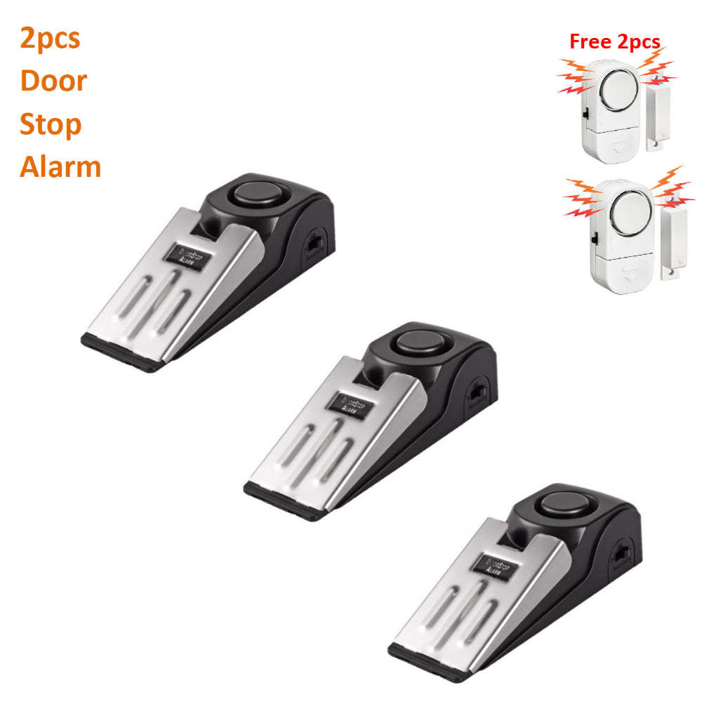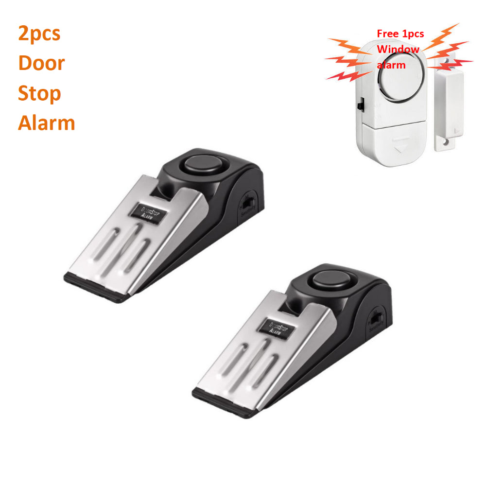 2x Door Window Stop Alarm Home Travel Wireless Security Alert Portable Kit for Safe with Free Window Alarm Stop