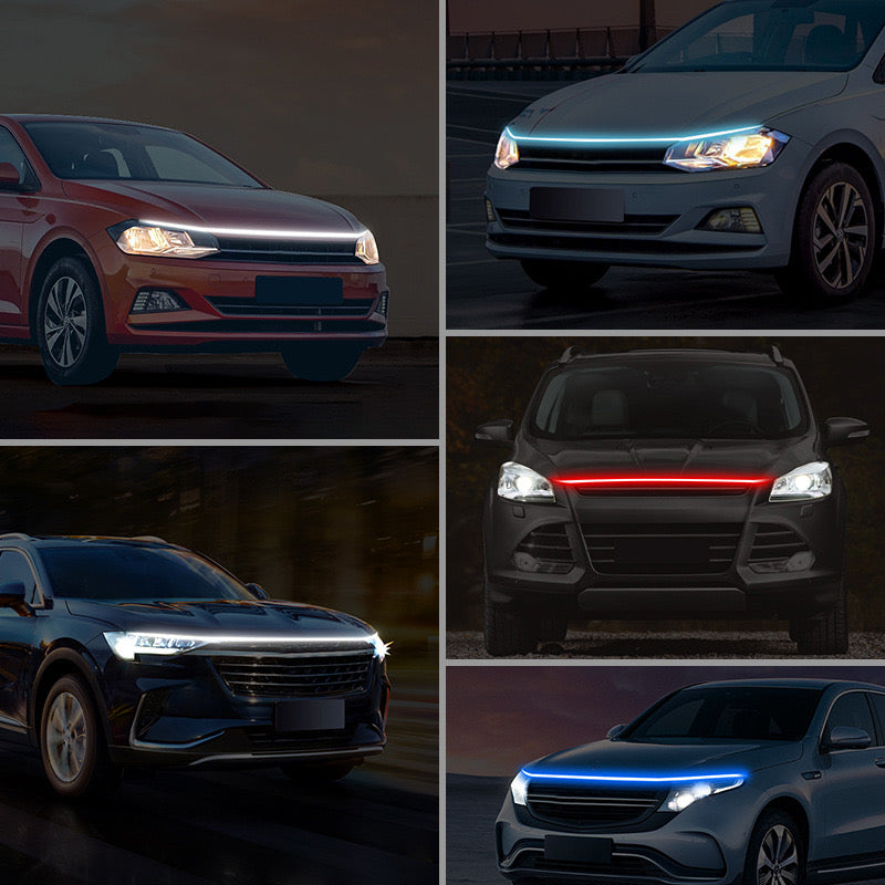 π[Full Fitment]: length size from 59 inches to 79 inches LED Hood Light Strip. Exterior Flexible Daytime Running Light for Universal Cars, Motorcycle, SUVs, and Trucks like Ram 1500 2500 3500, GMC Sierra, Ford F-150, F-120, Front Truck for Tesla