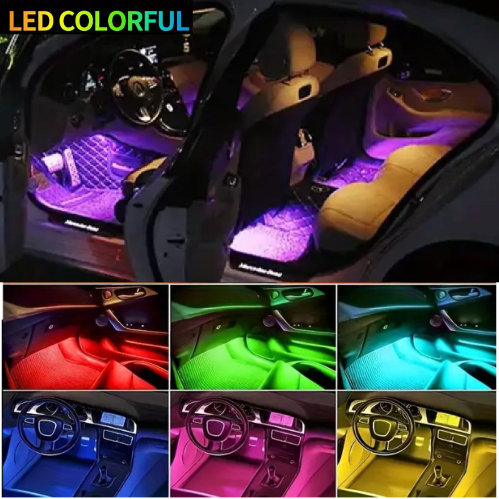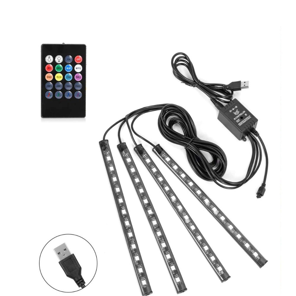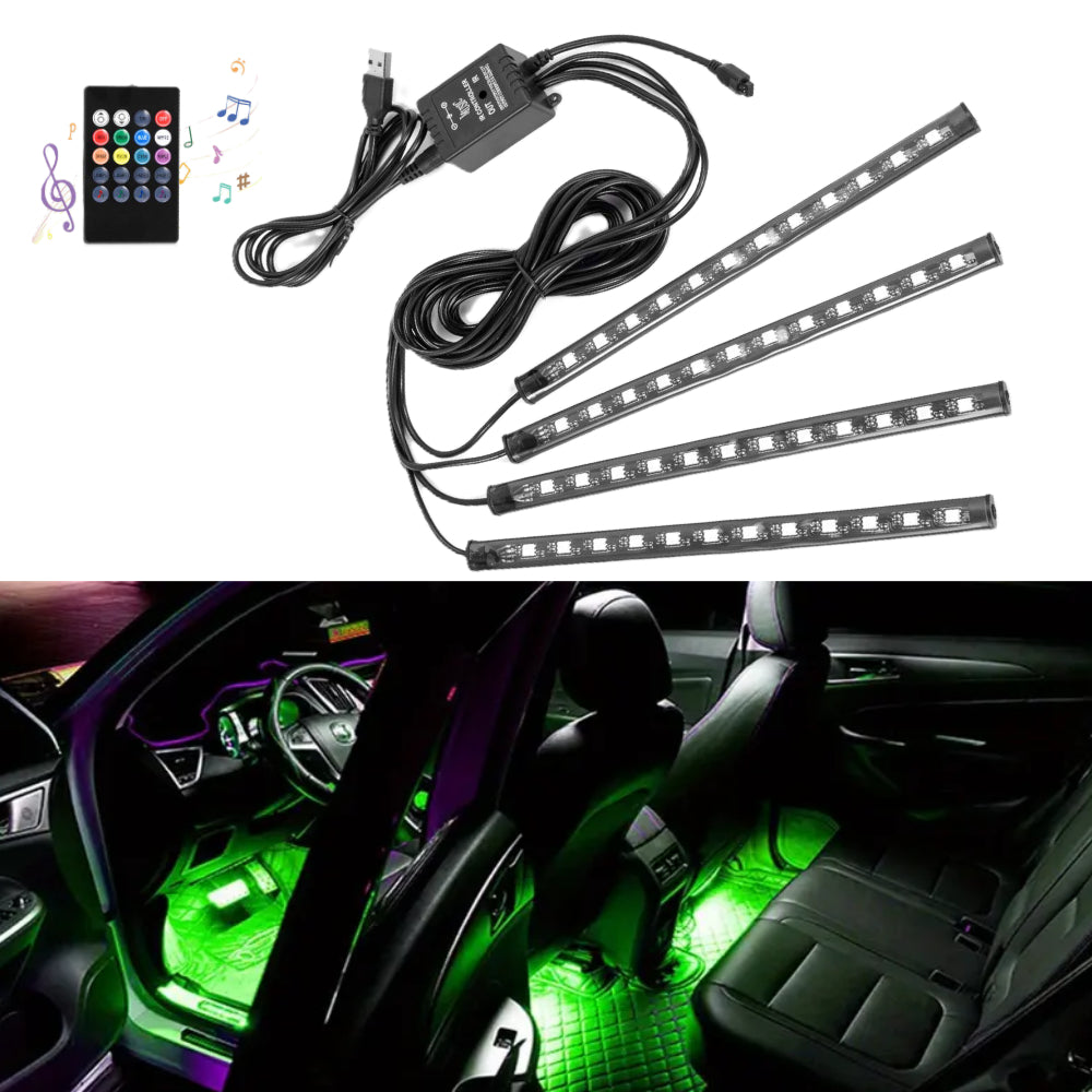AkiHalo 4pcs Vibrant LED Car Interior Lighting Kit - Neon Accent Lights with USB or Cigarette Lighter Powered, Color-Changing Underfoot Lights, RGB atmosphere light