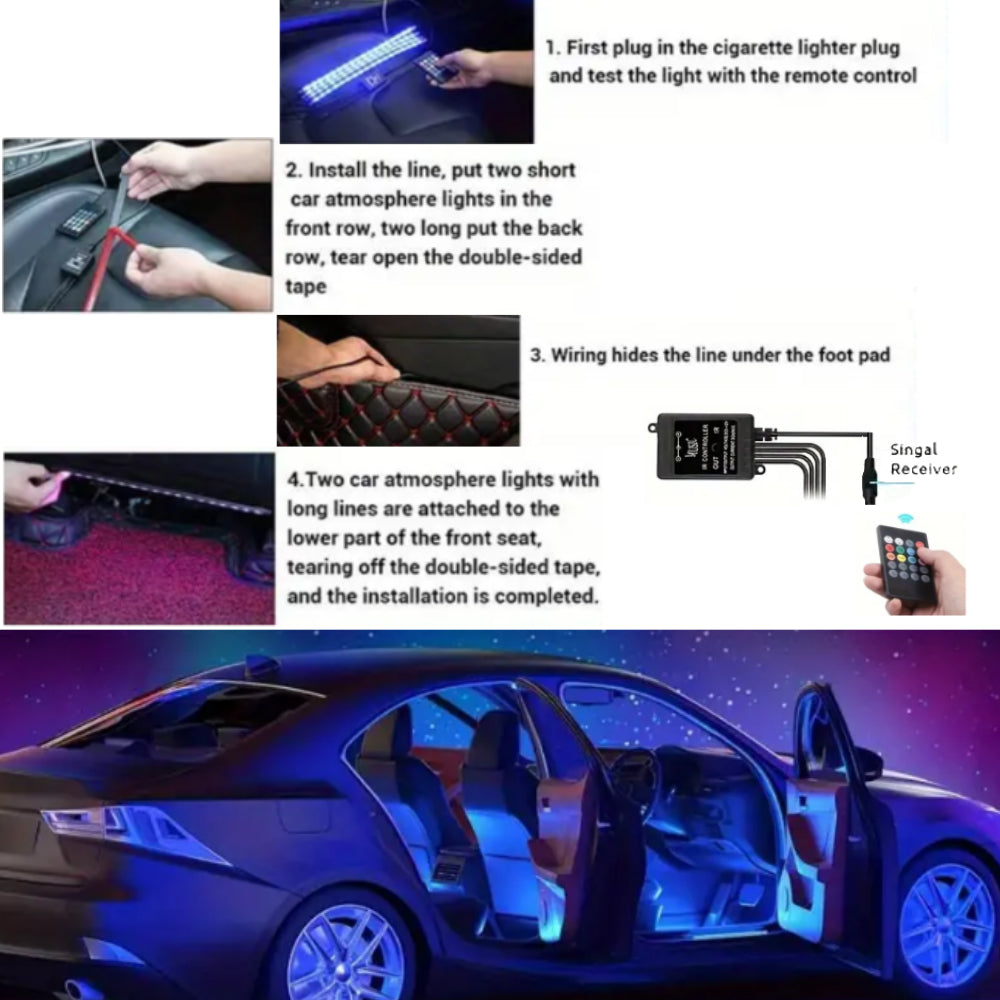 Sound Active Function: Car LED interior light can change color with your voice or music. Allows you to enjoy the fun with the 8-color changing model and also following your car stereo music rhythm as well as your voice.