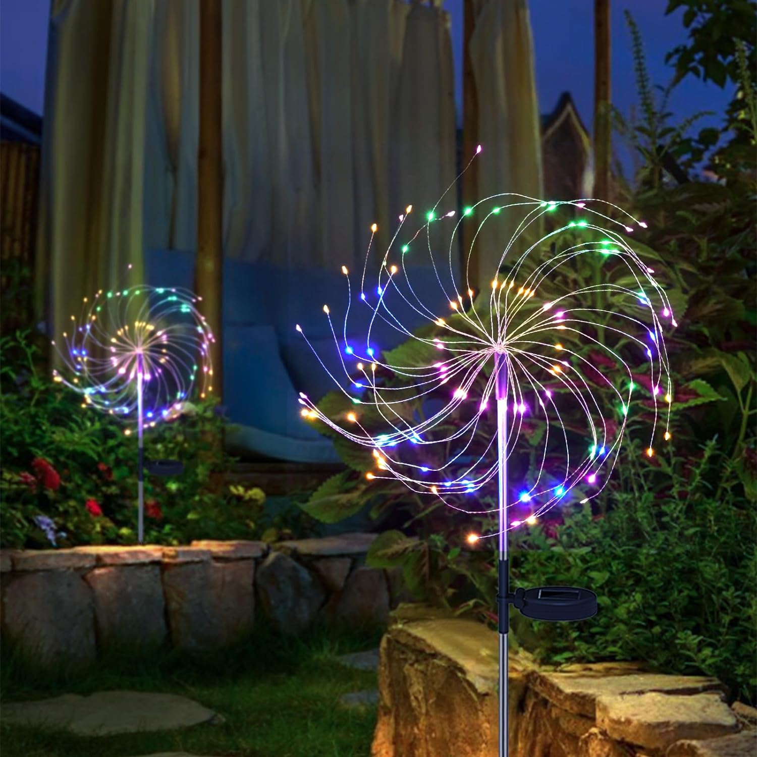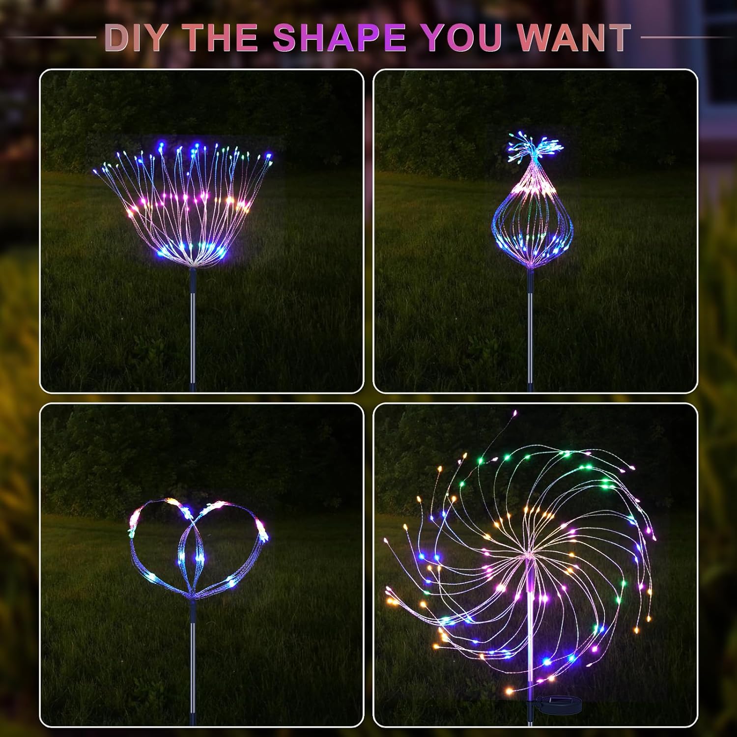 - DIY Solar Garden Decorative Lights - There are solar firework lights with flexible copper wires; the 120LED upgraded high bright small LED beads are distributed on each line; you can twist the flexible copper wires to your favorite shapes such as fireworks, flowers, ferries wheel, and heart shapes ,etc. Please use your imagination, and you can do more!