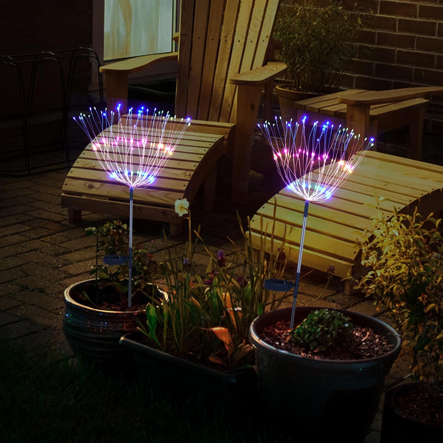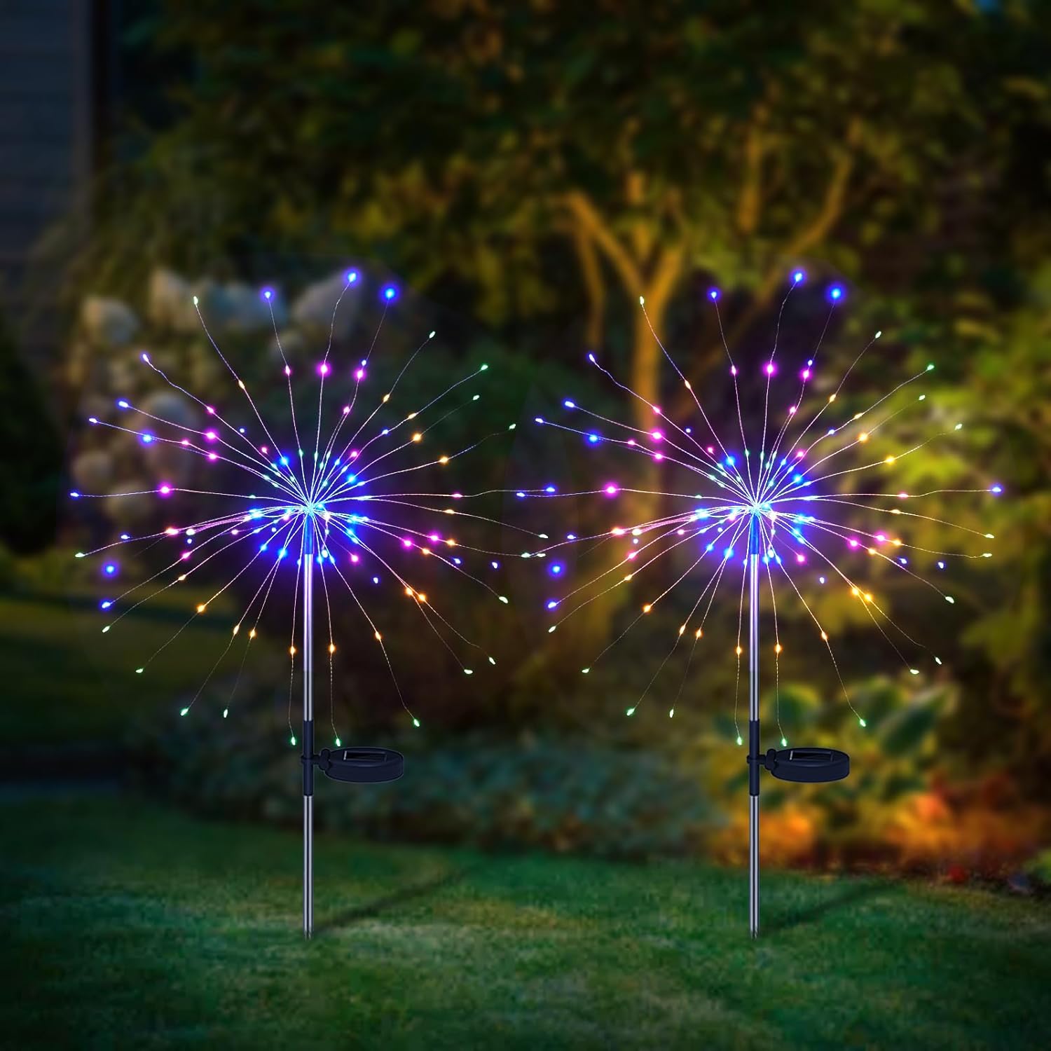 Akihalo DIY Solar LED Starburst Light for Garden Firework Lights Outdoor - 2 Pack 120 LED Waterproof Decorative Starburst Fairy Landscape Lamp, for Walkway Pathway Backyard Patio Yard Garden Lawn Flowerbed Party Decoration