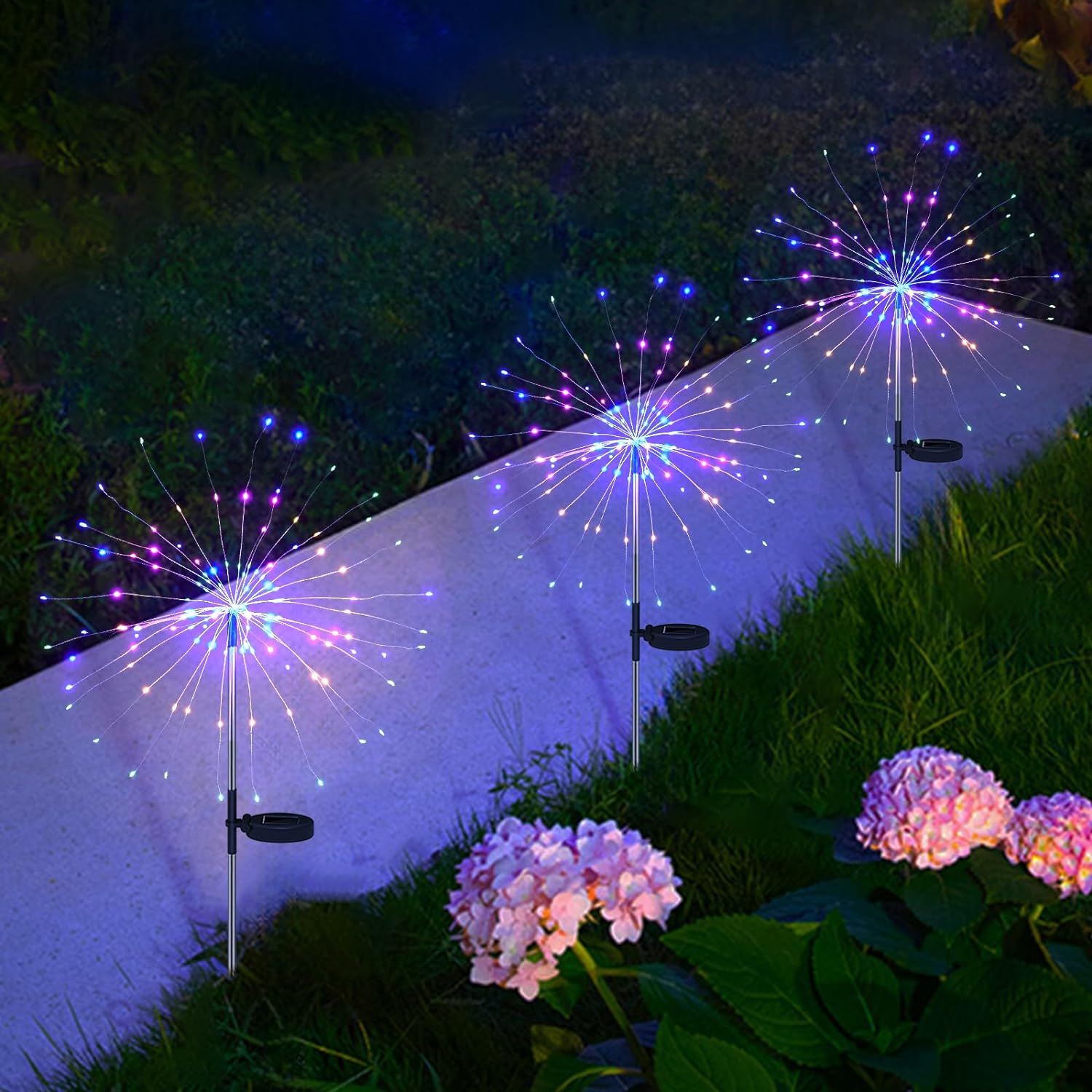 - IP65 Waterproof Firework Lights - Solar fairy lights are made of durable weatherproof materials and pass the strict air-tightness test. IP65 Waterproof & Dustproof & Heatproof. Solid hard ABS plastic construction can withstand years of rain, snow, frost and sleet as it ensures long-lasting performance under most weather conditions.