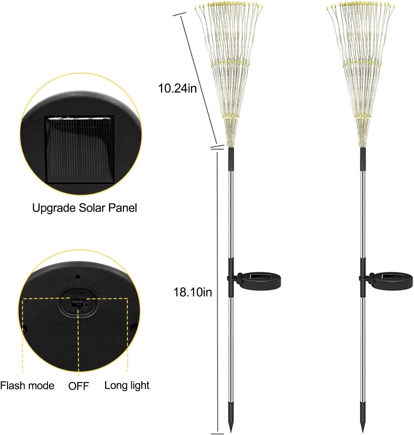 - Easy To Install - These solar garden fireworks lights are easy to install and don't need any tools. Please place it in a place with sufficient sunlight, firmly fix the solar pillar to the ground, tear off the film, and wait to charge. They will be unique decorations for festive events such as Christmas, Halloween, and Thanksgiving. If you encounter any other problems during use, please communicate with our customer service in time, and we will reply to you within 24h